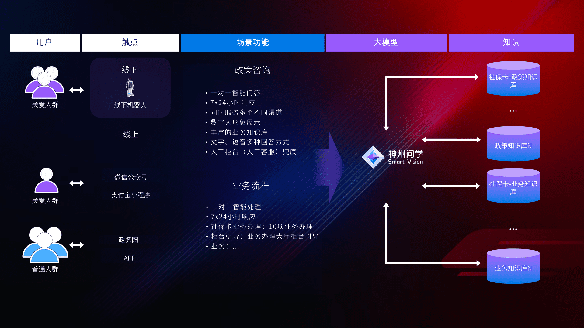 • 线上线下全覆盖:线上提供微信公众号、、、支付宝小程序、、政务网、、app多种渠道,,,,与线下机器人形成完整服务体系。。。。